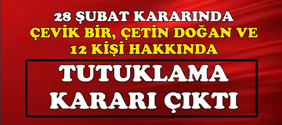 Ankara 5'inci Ağır Ceza Mahkemesi, 28 Şubat davasında aldıkları müebbet hapis cezası Yargıtay tarafından onanan aralarında Çevik Bir ile Çetin Doğan'ın da bulunduğu 14 sanık hakkında tutuklama kararı verdi.