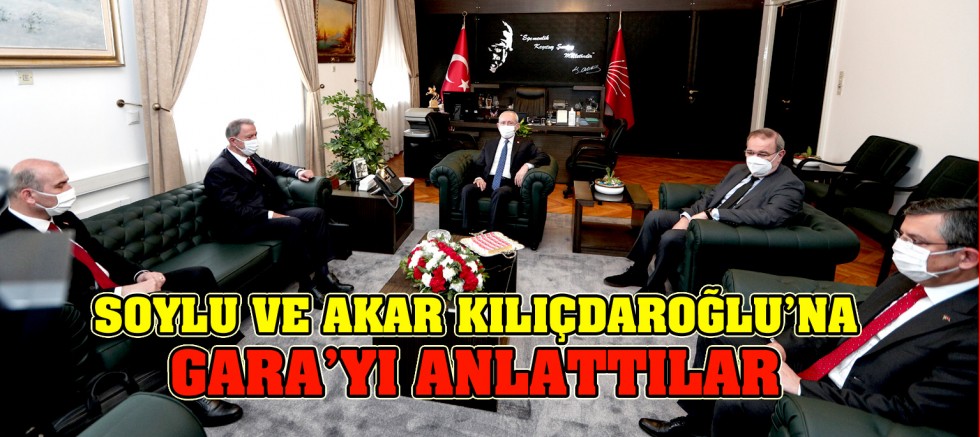 Cumhuriyet Halk Partisi Genel Başkanı Kemal Kılıçdaroğlu, Milli Savunma Bakanı Hulusi Akar ve İçişleri Bakanı Süleyman Soylu’yu Türkiye Büyük Millet Meclisi’ndeki makamında kabul etti.