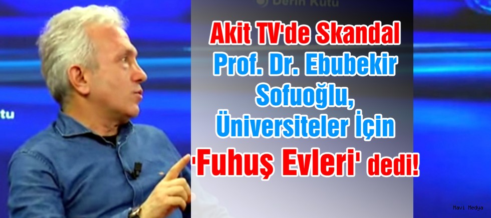 Akit TV canlı yayınında konuşan Sakarya Üniversitesi Tarih Bölümü Öğretim Üyesi Prof. Dr. Ebubekir Sofuoğlu, üniversiteler için "fuhuş evleri" dedi. Sofuoğlu'nun sözleri sosyal medyadan tepki topladı.
