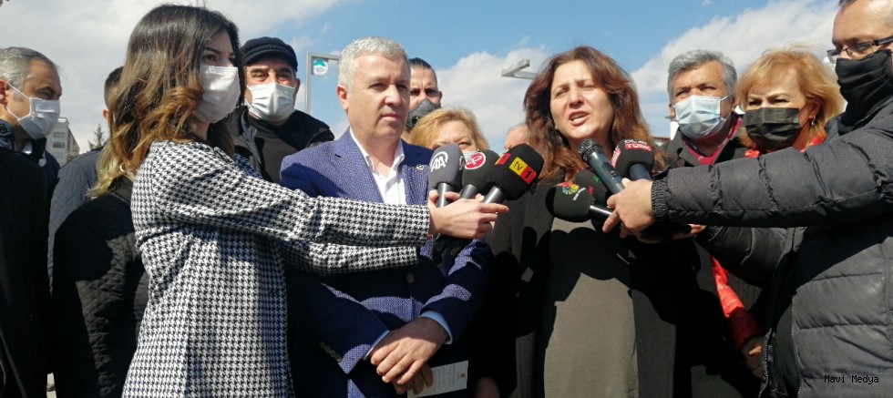 CHP Kayseri Milletvekili Çetin Arık, İl Başkanı Ümit Özer ve partililerle Büyükşehir Belediyesi önündeki