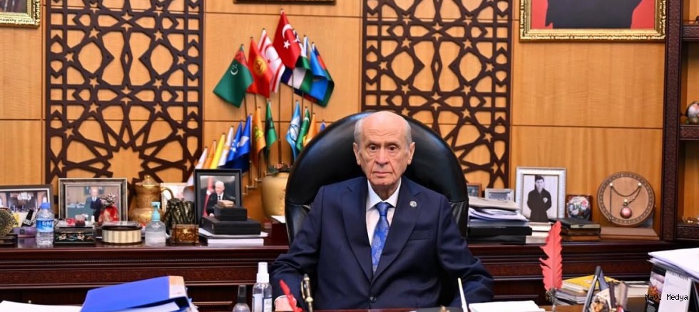 Paylaşıma, Bahçeli'nin genel merkezdeki makamında otururken çekildiği anlaşılan bir fotoğraf da eklendi.