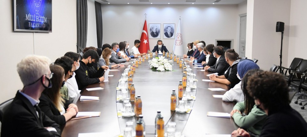 "Uzun bir aradan sonra yeniden yüz yüze eğitime başlarken istedik ki öğrencilerimizi dinleyelim, bir ihtiyacınız var mı? Yüz yüze eğitimden, Bakanlığın yürüttüğü faaliyetlerden memnun musunuz? Bizden ne gibi beklentileriniz var?" diyerek sözü öğrencilere bırakan Bakan Özer, onların öneri ve isteklerini dinledi.