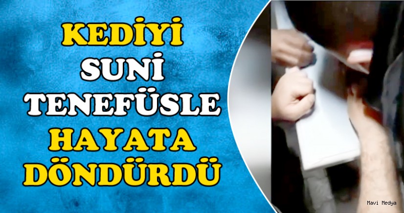 Kediyi avucunun içerisine alan bekçi, yaklaşık 20 dakika kalp masajı ve suni teneffüs yaparak hayata döndürdü.