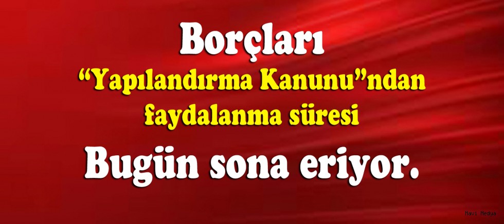 Koronavirüs salgının, ülke ekonomisine etkilerini azaltmak, istihdamı ve üretimi korumak ve vatandaşların salgından etkilenmesini en aza indirmek, kamu finansal dengesini korumak ve sürdürülebilir kılmak adına, TBMM tarafından kabul edilen “Yapılandırma Kanunu”ndan faydalanmak isteyenler için bugün son gün.