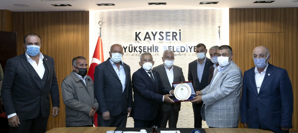 Kayseri’de 8 ilçenin ziraat odası başkanı, Büyükşehir Belediye Başkanı Dr. Memduh Büyükkılıç’a tarım ve hayvancılığa verdiği desteklerinden dolayı teşekkür ziyaretinde bulunarak, plaket takdim etti. Başkan Büyükkılıç, şimdiye kadar çiftçilerin kullanımı için 69 adet makine, teçhizat desteğinin yanı sıra tohum ve sulama desteği verildiğini söyleyerek, “Bizim imkânlarımız sizin imkânlarınızdır. Bundan emin olunuz. Biz ayrıştırmayız, ötekileştirmeyiz” dedi.