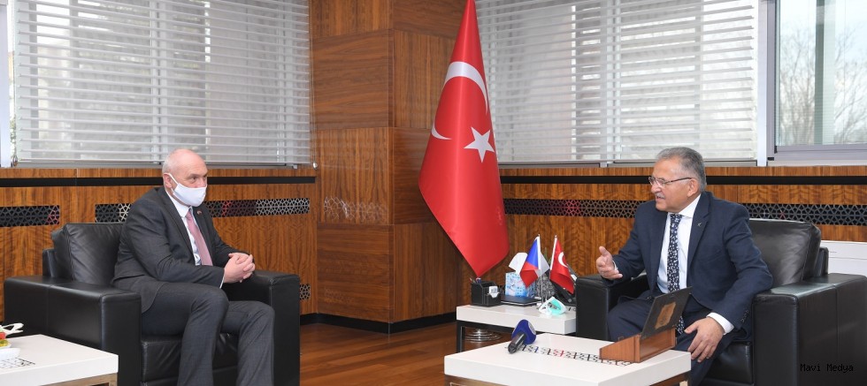 Büyükelçi Vacek ise Türkiye’nin Çek Cumhuriyeti için başarılı bir iş ortağı olduğunu, pandemiye rağmen şu andaki ticaret hacminin yüksek seviyede olduğunu vurguladı. Vacek, ziyarette yaptığı konuşmasında, “Geçen sene kovide rağmen 2 milyar euroluk bir ticaretimiz oldu. Şu anda Türkiye’de enerji sektörü üzerine 3 milyarlık euroluk bir ticaret, yatırım var. Çekler için en önemli yatırım noktalarından biri Türkiye. Enerji sektöründen farklı yatırımlar da var. Yeni yatırımcılar sürekli geliyor. Kayseri’de de yatırım olabilir ama önemli noktaya değinmek istiyorum. Belediyelerin yapacağı altyapı projelerinde de Çek’ler önemli görevler alabilirler” şeklinde konuştu.