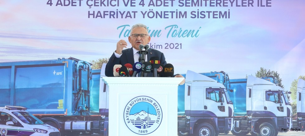 Başkan Büyükkılıç, gelecek kuşaklara daha yaşanılabilir bir Kayseri bırakabilmek amacıyla çevrenin korunmasına yönelik çalışmalar ve yatırımlara hız kesmeden devam ettiklerini ifade ederek, “Bugün burada tanıtımını yaptığımız araçları kullanacağımız ve Kasım ayı içerisinde işletmeye alacağımız çöp ara transfer istasyonları marifetiyle ilçelerimize çöp konusunda önemli fırsat sunuyoruz” dedi.