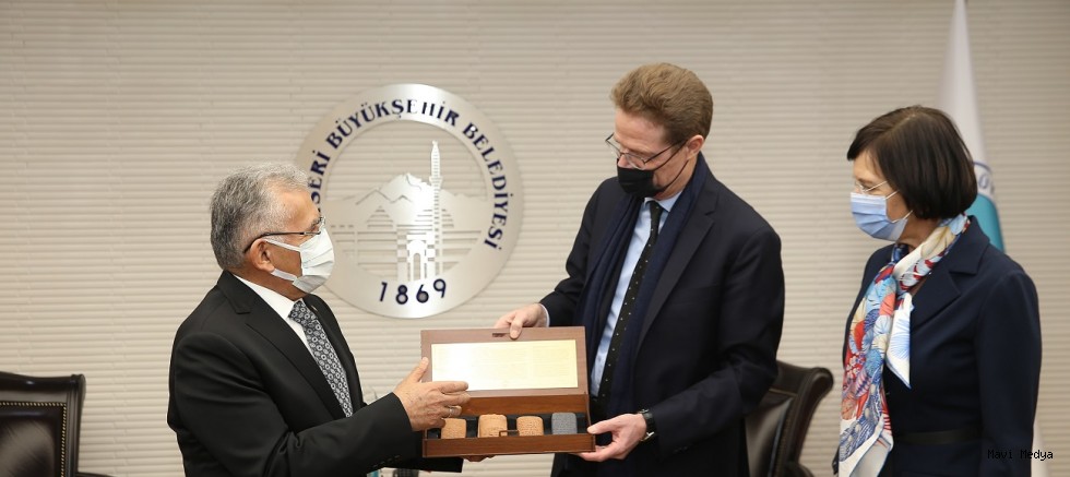 Başkan Büyükkılıç, ziyarette konuk Büyükelçi ve eşine Yahyalı Kilimi, el işlemeli vazo, Kültepe Tabletleri’nin replikası ile ebru çalışması şal ve kravat hediye ederken, konuk Büyükelçi de Başkan Büyükkılıç’a ziyaretin anısına AB amblemli kristal bir çalışma hediye etti. Ziyarette Büyükelçi’ye 6 bin yıllık farklı medeniyetlere ev sahipliği yapmış Kayseri’yi tanıtan kısa film de izletildi.