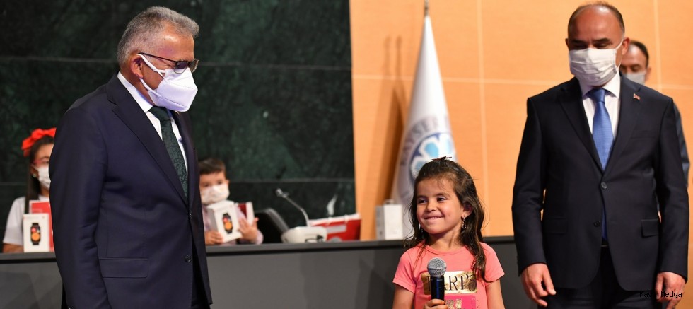 Kayseri Büyükşehir Belediye Başkanı Dr. Memduh Büyükkılıç, Kayseri Ticaret Odası (KTO) ve İl Milli Eğitim Müdürlüğü işbirliği ile düzenlenen İstiklal Marşı’nı Güzel Okuma Yarışması ödül törenine katılarak, İstiklal Marşı’nı coşku ve inançla okuyarak herkesin dikkatini çeken ve jüri özel ödülüne layık görülen Yeşilhisarlı İlkokulu 1. sınıf öğrencisi 7 yaşındaki Ayşe Ebrar Yamuk’a ödül verdi.
