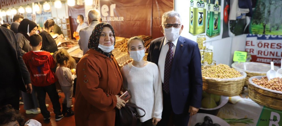 Başkan Büyükkılıç, Bakan Taner Yıldız ile birlikte Yöresel Ürünler Fuarı’nı ziyaret ederek, ürünleri inceledi, esnaf ve vatandaşlarla sohbet etti. Yöresel ürünlerin sergilendiği stantları gezen, burada esnaf ve vatandaşlarla bir araya gelen Başkan Büyükkılıç, esnaflara bereketli alışverişler diledi.