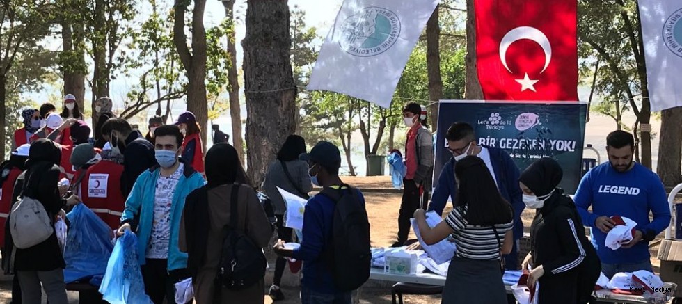 Büyükşehir Belediyesi’nin şehir merkezinden üç otobüs tahsis ederek de desteklediği Dünya Temizlik Günü etkinliği dolayısıyla Sarımsaklı’daki kamp ve mesire alanında yapılan atıkları toplama faaliyeti, yaklaşık 200 gönüllü ile gerçekleştirilirken, söz konusu bölge tamamen çöplerden temizlendi.