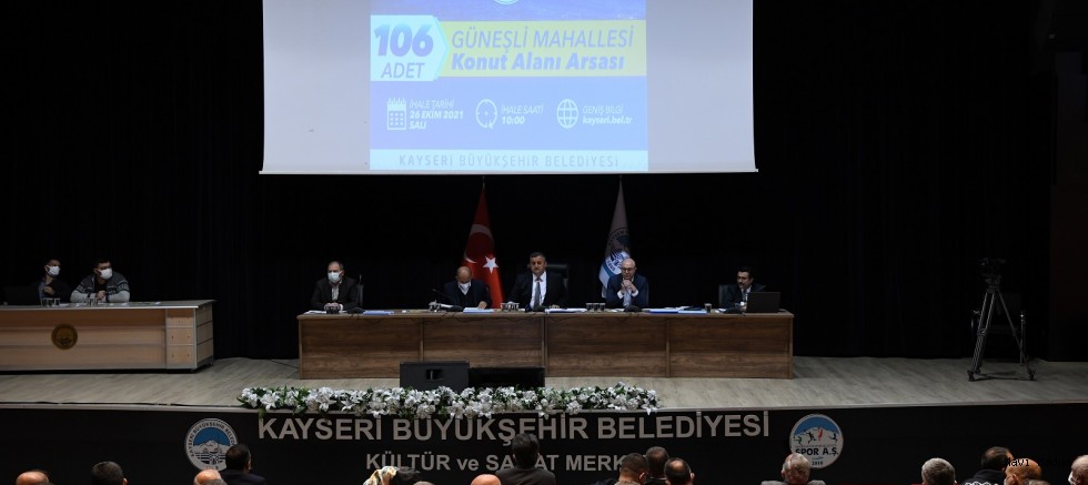 Mülkiyeti Kayseri Büyükşehir Belediyesi'ne ait olan, Kocasinan ilçesi Güneşli Mahallesi'nde bulunan 106 adet konut alanı arsası, 2886 sayılı Devlet İhale Kanunu'nun 45. maddesi gereğince yapılan "Açık Teklif Usulü" ihale ile satışa çıktı.