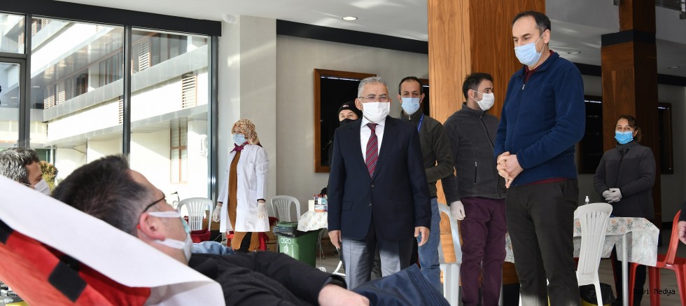 Kayseri Büyükşehir Belediye Başkanı Dr. Memduh Büyükkılıç, kan bağışı seferberliği kapsamında, Erciyes Üniversitesi Hastaneleri Kan Merkezi işbirliği ile belediye personelinin kan bağışı yaptığını söyledi. Büyükkılıç, “Kayseri insanı sistemini fedakârlık ve hayırseverlik üzerine kurmuştur, kan veren personellerimize ve bu hizmeti ayağımıza getiren üniversitemize teşekkür ediyoruz” dedi.