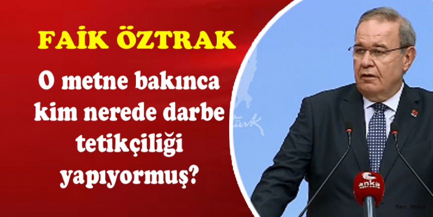 CHP Sözcüsü Faik Öztrak, “103 tane amiralin açıklamasından darbe çıkartmak olsa olsa sivil darbecilere mahsus bir özelliktir" açıklamasını yaptı.