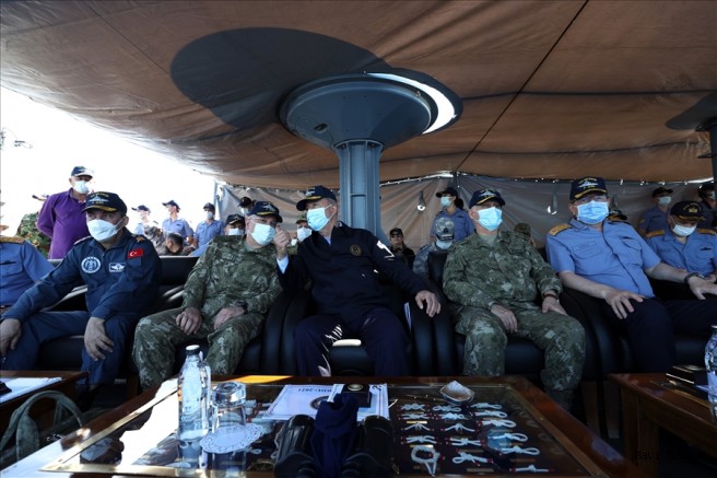Milli Savunma Bakanı Hulusi Akar, beraberinde Genelkurmay Başkanı Orgeneral Yaşar Güler, Kara Kuvvetleri Komutanı Orgeneral Ümit Dündar, Hava Kuvvetleri Komutanı Orgenaral Hasan Küçükakyüz ve Deniz Kuvvetleri Komutanı Oramiral Adnan Özbal ile Ege Denizi ve Doğu Akdeniz’de icra edilen DENİZKURDU-2021 Tatbikatı’nın Seçkin Gözlemci Günü’ne katıldı.