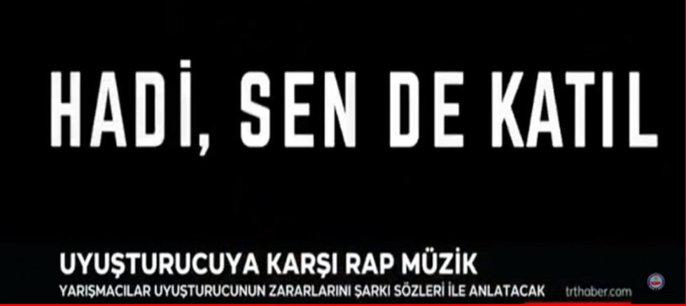 Emniyet Genel Müdürlüğü koordinesinde uyuşturucunun zararlarına dikkati çekmek amacıyla rap müzik yarışması düzenlendi. Bakanlığımız tarafından yapılan Narko Yarışma Projesi kapsamında, EGM Narkotik Suçlarla Mücadele Daire Başkanlığı koordinesinde düzenlenen ödüllü yarışmada, başvurular başladı.