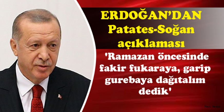 Erdoğan konuşmasında Ramazan ayında 'fakir fukaraya, garip gurebaya' patates ve soğan dağıtılacağını söyledi.