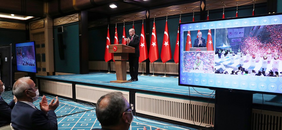 Cumhurbaşkanı Erdoğan, Cumhurbaşkanlığı Külliyesi'nde, video konferans yöntemiyle Yusufeli Barajı 3 Milyonuncu Beton Dökümü, Bayburt Demirözü Sulaması, Rize Merkez ve Güneysu İlçeleri ve Taşlıdere Vadisi Islahı 5. Kısım Hizmete Alma Töreni'ne katılarak katılımcılara hitap etti.