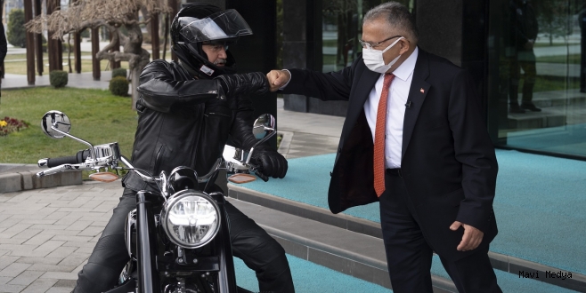 Başkan Büyükkılıç’ı ziyarete tutkunu olduğu motosikletiyle geldi. Büyükkılıç, “Cumhuriyet