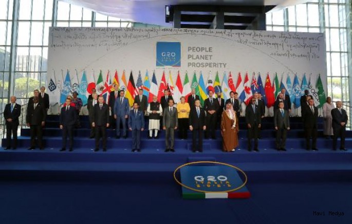 G20 Dönem Başkanı İtalya'nın, Roma'daki Nuvola Kongre Merkezi'nde düzenlediği zirvenin açılışı, ev sahibi İtalya Başbakanı Mario Draghi'nin, Cumhurbaşkanı Erdoğan'ın da aralarında bulunduğu konuklarını tek tek kapıda karşılamasıyla yapıldı.