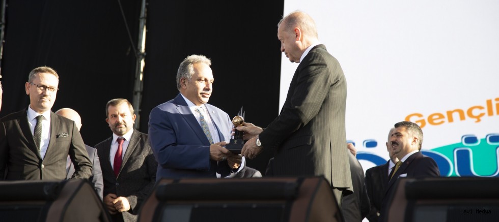 Talas Belediye Başkanı Mustafa Yalçın, Ankara Millet Bahçesi’nde düzenlenen ‘Tam Bana Göre Festival’inde ödülü Cumhurbaşkanı Recep Tayyip Erdoğan’ın elinden aldı.