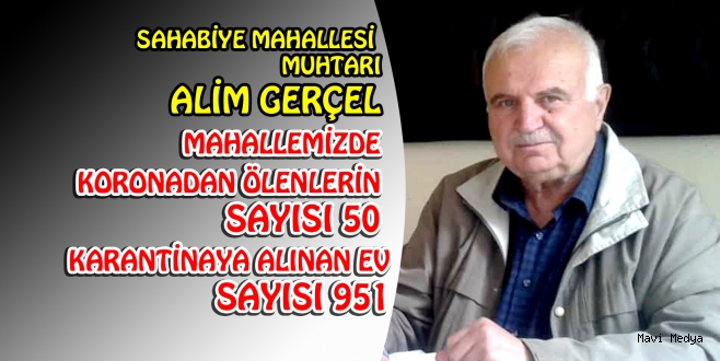 "Mahallede mart ayından bu yana 50 kişi koronavirüs nedeniyle hayatını kaybederken, 951 daire için de karantina uygulaması yapıldı. Sahabiye Mahallesi geçiş mahallesi olduğu için gündüz nüfusu 70 bini buluyor. Nüfusun çoğalması ile birlikte kuralların ihlal edildiğini görüyoruz. Kahvelerde gizli gizli çay içilmekte ve sigara yasağı olmasına rağmen kurallara uyan vatandaş sayısı çok nadir. Alınan tedbirler caydırıcı, uyulması için yazılan 900 TL'lik cezaya rağmen vatandaş halen duyarsız davranıyor.