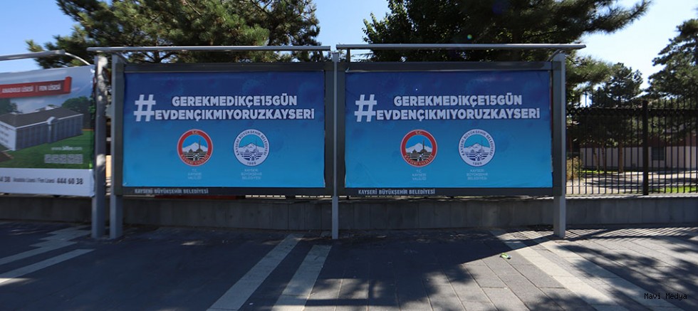 Kayseri Büyükşehir Belediyesi’nce, Başkan Dr. Memduh Büyükkılıç’ın talimatıyla kentteki açık hava reklam alanları “#Gerekmedikçe15GünEvdenÇıkmıyoruzKayseri” konulu çalışmalarla donatıldı. Kayseri Valiliği ile Kayseri Büyükşehir Belediyesi’nin logolarının yer aldığı çalışmalara Kayserililer ’in ilgi gösterdiği gözlendi.