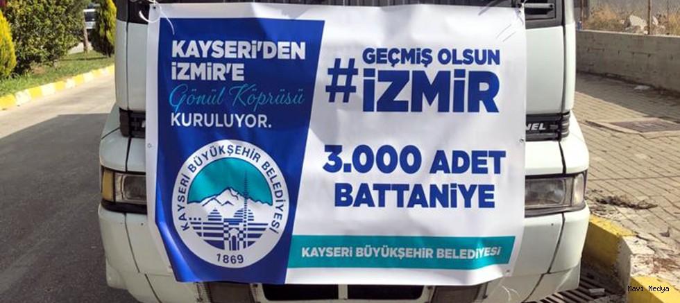 İzmir’de yaşanan 6.6 şiddetindeki deprem felaketi sonrasında Kayseri Büyükşehir Belediyesi, İzmir için yardım elini uzattı. Büyükşehir Belediyesi, havaların soğuması ile birlikte ihtiyacı olan İzmirli vatandaşlara ulaştırılmak üzere 3 bin adet battaniye gönderdi.