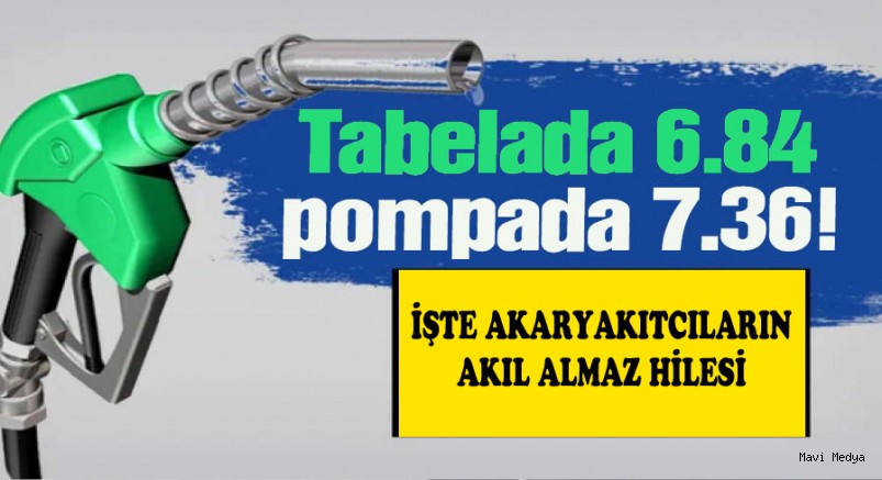 Büyük tabelada “MOTORİN 7.19' yazıyor. Ancak asıl tabeladaki fiyat 7.36. Pompada da 7.36 TL.