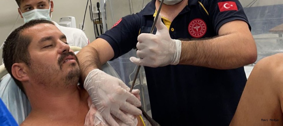 Karaburun’da hobi amaçlı balık avlamaya giden Sonugür, kazara elindeki zıpkını kalbine sapladı. Bir süre denizde kaldıktan sonra arkadaşlarının yardımıyla kıyıya çıkartılan Sonugür, 112 Acil Servis ekipleri tarafından DEÜ Araştırma Uygulama Hastanesi Acil Servisi’ne kaldırıldı.