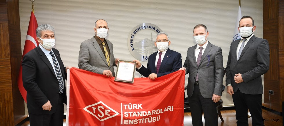 Kayseri Büyükşehir Belediyesi Ulaşım A.Ş. Türkiye’de bir ilke daha imza atarak, Türk Standartları Enstitüsü’nün (TSE) “TSE Covid-19 Güvenli Hizmet Belgesi”ni alma başarısı gösterdi. TSE Bölge Müdürü Mahmut Ulaş, belgeyi, Büyükşehir Belediye Başkanı Dr. Memduh Büyükkılıç’a takdim etti.