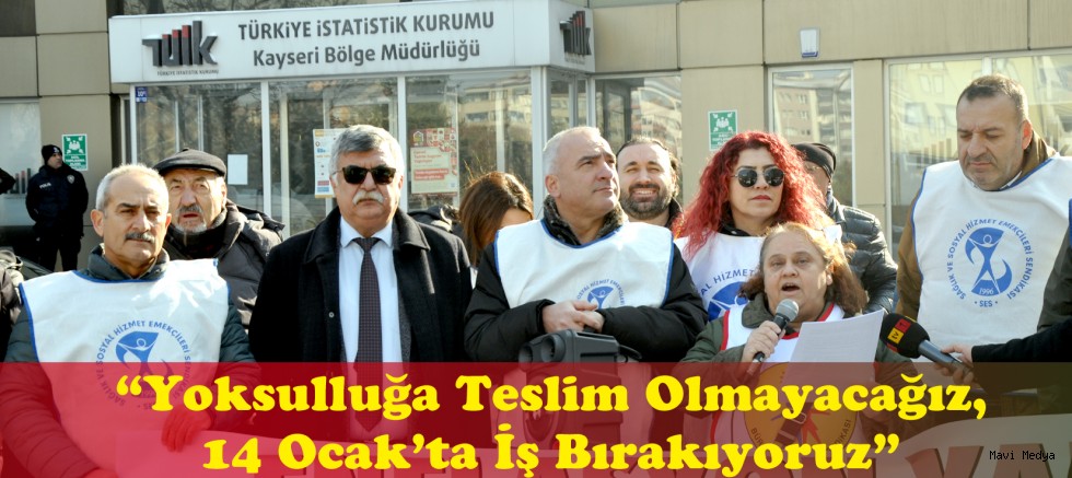 KESK, TÜİK’in açıkladığı enflasyon verilerine tepki göstermek amacıyla TÜİK binası önünde basın açıklaması yaptı. KESK Kayseri Şubeler Platformu adına açıklama yapan BES Şube Başkanı Fatmagül Bayat, açıklanan verilerin gerçek hayat pahalılığını yansıtmadığını belirterek, kamu emekçilerinin ve emeklilerin sistematik biçimde yoksullaştırıldığını söyledi. KESK, insanca bir yaşam için 14 Ocak’ta ülke genelinde iş bırakma kararı aldığını duyurdu.