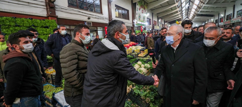 Burada esnafı ziyaret ederek, sorunlarını dinleyen ve sebze-meyve fiyatları hakkında bilgi alan Kılıçdaroğlu, daha sonra Ankara Sebze ve Meyve Komisyoncuları Derneği Başkanı Ceyhan Gündüz ile makamında görüştü.