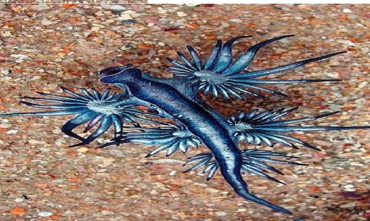 Latince adı Glaucus atlanticus olan mavi deniz ejderi, denizin derinliklerinden gelen bir yaratığı andıran elektrik mavisi ve gri rengi sayesinde kolayca tanınabiliyor.