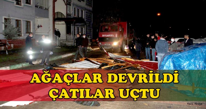 Yozgat merkez ve ilçelerinde akşam iftar vaktinde şiddetli rüzgar, çatıları uçurdu, ağaçları devrildi, elektrik kesintilerine neden oldu.