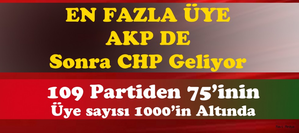 Yargıtay Cumhuriyet Başsavcılığı kayıtlarına göre 109 partinin bulunduğu Türkiye'de sadece iki partinin üye sayısında milyonla ifade edilebiliyor.