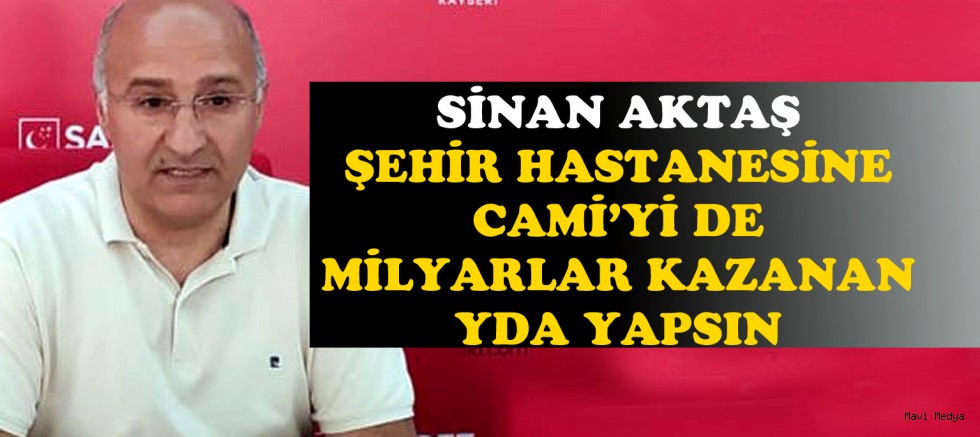 Saadet Partisi Melikgazi İlçe Başkanı Sinan Aktaş Şehir Hastanesinde bir cami bulunmamasını eleştirerek "YDA burayı 25 yıl boyunca çalıştıracak ve milyarlarca Euro para kazanacak. Ama cami yaptırmak için hayırsever aranacak. Camiiyi YDA yaptırmalı." dedi