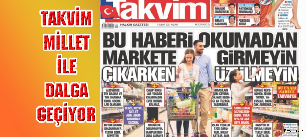 Bugünkü baskılarında gıdalardaki pahalılığa karşı yurttaşlara 'taktikler' vermeye çalışan Takvim'in kullandığı ifadeler gündem oldu. Hayat pahalılığını gizlemeye çalışan gazete, sanki pahalılığa tüketim çılgınlığına çocuklar sebep oluyormuş gibi lanse ederek "çocuklarınızı markete götürmeyin", "tok karnına marketlere gidin" gibi uyarılarda bulundu.