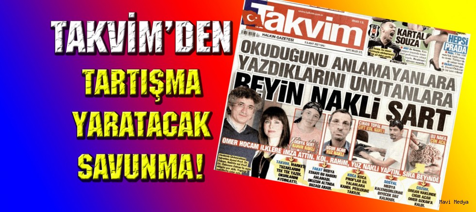 "Okuduğunu anlamayanlara yazdıklarını unutanlara beyin nakli şart" manşetiyle çıkan ve kendisini eleştirenlere göndermede bulunmaya çalışan Takvim, şu ifadeleri kullandı: