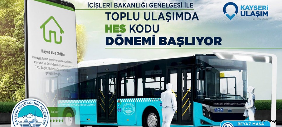 Kayseri Büyükşehir Belediye Başkanı Dr. Memduh Büyükkılıç, pandemi ile mücadele kapsamında Sağlık Bakanlığı ile Kayseri Büyükşehir Belediyesi arasında toplu ulaşımda HES kodu kullanılabilmesine yönelik protokol imzalandığını belirterek, toplu ulaşım araçlarını kullanan vatandaşların tamamının Kayseri Ulaşım A.Ş.’nin resmi internet sitesinden 15 Kasım’a kadar ‘Toplu Taşıma Kart-HES Kodu’ eşleştirmelerinin sisteme tanımlaması gerektiğini söyledi.