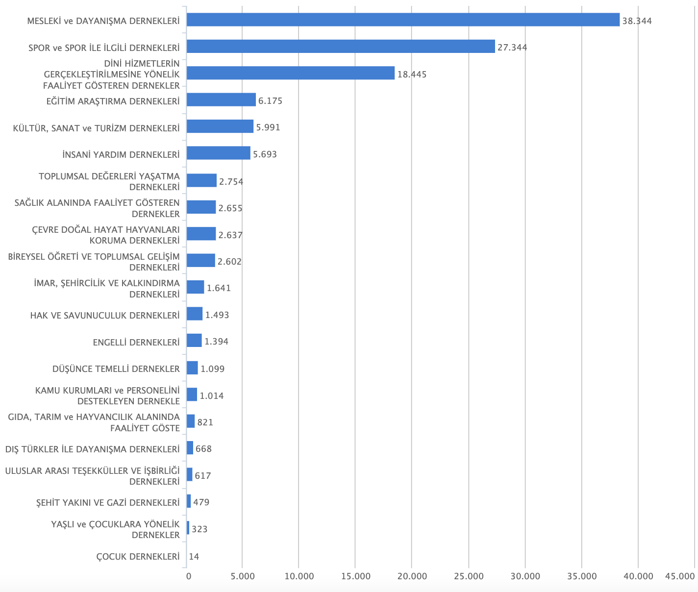 Faaliyet alanlarından bazılarına göre dernek sayıları ise şöyle: