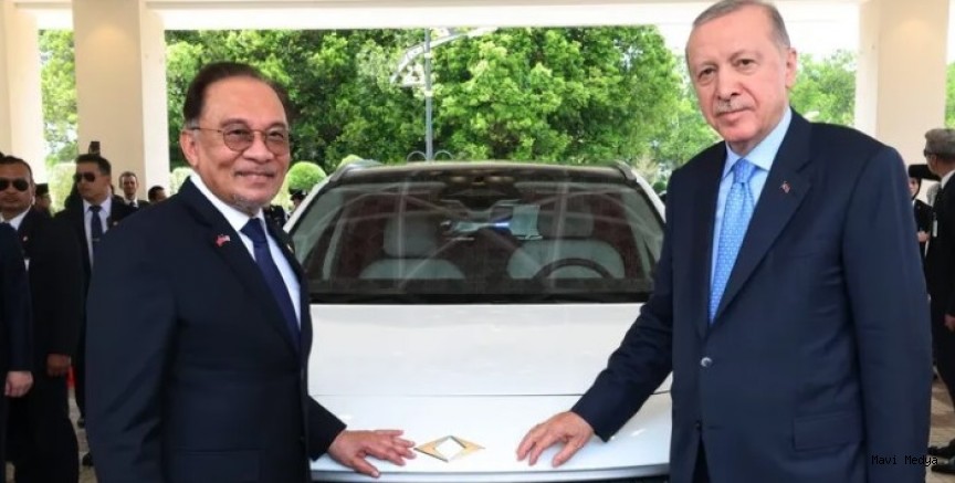 Cumhurbaşkanı Recep Tayyip Erdoğan, Malezya Başbakanı Enver İbrahim'e Türkiye'nin yerli elektrikli otomobili Togg'u hediye etti.