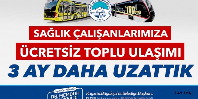 Kayseri Büyükşehir Belediyesi, sağlık çalışanlarına ücretsiz toplu ulaşım desteğini 3 ay uzattı. Başkan