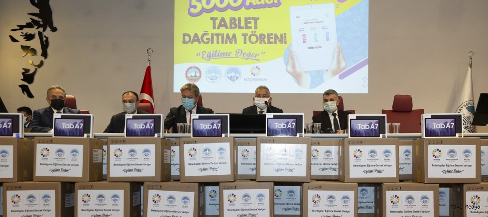 Kayseri Büyükşehir Belediyesi başta olmak üzere AK Partili belediyeler, uzaktan eğitim alan ihtiyaç sahibi öğrenciler için tablet desteğini sürdürüyor. Bu kapsamda Milli Eğitim Bakanlığı, Kayseri Valiliği, Kayseri Büyükşehir Belediyesi, Melikgazi Belediyesi ve Kocasinan Belediyesi işbirliğinde 5 bin adet tabletin teslim töreni yapıldı.