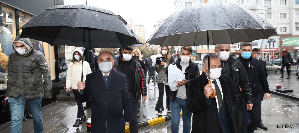 Konuşmaların ardından Vali Günaydın ile Başkan Büyükkılıç, Sivas Caddesi, Hunat Mahallesi, Yoğunburç, Kazancılar Çarşısı, Cumhuriyet Mahallesi ve Yeraltı Çarşısı gibi şehrin en işlek yaşam alanlarında esnafları tek tek ziyaret ederek, salgın kuralları konusunda hatırlatmalarda bulundu. Vali ile Başkan, esnafların yanı sıra vatandaşlardan korona virüs salgınının önlenmesine yönelik tedbirlere harfiyen uyulmasını, bu sayede kentteki risk oranının düşürülmesine katkı sağlanmasını istediler.