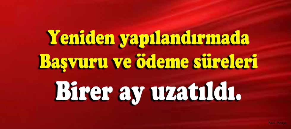 Yeniden yapılandırmada başvuru ve ödeme süreleri birer ay uzatıldı.
